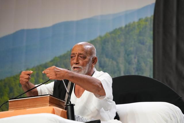 શરૂ કરતા બાપુએ જણાવ્યું કે મહાભારતમાં સાવિત્રી મંત્ર છે એમ રામચરિત માનસમાં મંગલ શબ્દ પ્રધાન છે.આ મંગલ શબ્દ રામચરિત માનસનો સાવિત્રી મંત્ર છે.વાણી અને વિનય જીવન માટે જરૂરી છે.વાણી બધા પાસે હોય,વિનય ક્યાંક-ક્યાંક ન પણ હોય! રામચરિત માનસ અને મહાભારતમાં માતૃશક્તિની ખૂબ જ ઈજ્જત કરી છે પરંતુ લોકો વગર વિચાર્યે એનો વિરોધ કરતા હોય છે.મહાભારતે પણ માતૃ શક્તિ અને નારી પાત્રોનું મહિમાગાન ખૂબ કર્યું છે. વિશ્વાસથી ભક્તિ,શ્રદ્ધાથી જ્ઞાન અને ભરોસાથી ભગવાન મળે છે.