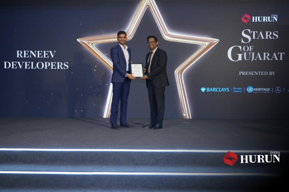 ગુજરાત, અમદાવાદ | ૦૮ ડિસેમ્બર ૨૦૨૫ — 4 ડિસેમ્બરના રોજ અમદાવાદના લે મેરિડિયન ખાતે યોજાયેલા હુરુન ઈન્ડિયા એવોર્ડ્સ 2025માં રેનીવ ડેવલપર્સના સીઈઓ અને મેનેજિંગ ડિરેક્ટરને ગુજરાતના અર્થતંત્રમાં ઉત્કૃષ્ટ યોગદાન – સમુદાય-કેન્દ્રિત રિયલ એસ્ટેટ વિકાસમાં શ્રેષ્ઠતાથી સન્માનિત કરવામાં આવ્યા છે. આ સન્માન હુરુન ઈન્ડિયાના સ્થાપક અને મુખ્ય સંશોધક અનસ રહેમાન જુનૈદ દ્વારા આપવામાં આવ્યું હતું અને અમદાવાદ અને ગાંધીનગરમાં જવાબદાર, સુલભ અને ડિઝાઇન-આધારિત રિયલ એસ્ટેટ વિકાસ બનાવવા માટેના તેમના યોગદાનને માન્યતા આપે છે.