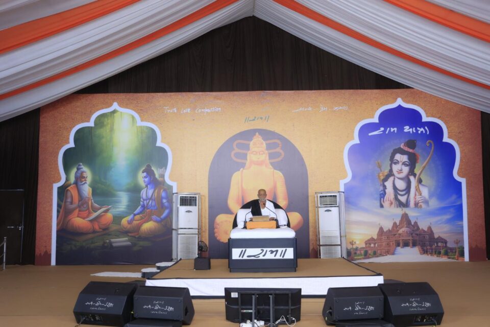 એ પછી ગ્રંથ મહત્વ સમજાવતા સાત કાંડ,દરેક કાંડની એક-એક મંત્ર અને દરેક મંત્ર પછી વંદના પ્રકરણમાં વિવિધ વંદનાઓ બાદ ગુરુવંદના અને અંતે હનુમંતવંદનાનું ગાન કરીને આજની કથાનું સમાપન કર્યું આવતીકાલે બીજો દિવસ,કથા આગળ વધી અગસ્ત્ય મુનિના આશ્રમમાં જશે.