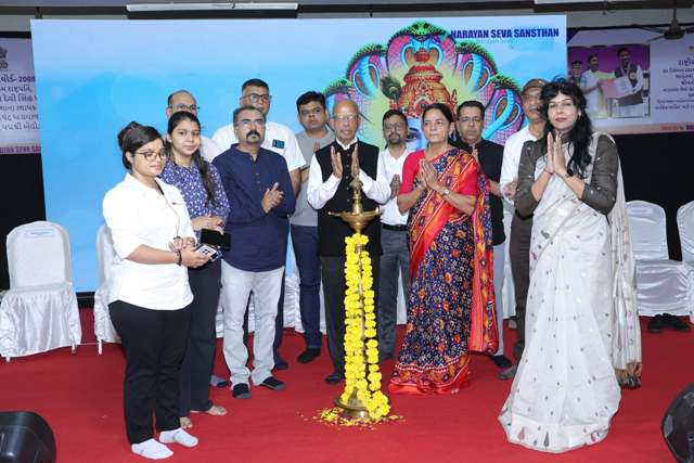 અમદાવાદ | 03 ઓગસ્ટ 2025: નારાયણ સેવા સંસ્થાન અને (IR) ઈન્ગરસોલ રેન્ડના સંયુક્ત ઉપક્રમે રવિવારે અમદાવાદના શ્રી કચ્છ કડવા પટેલ સનાતન સમાજ, નરોડા ખાતે નિઃશુલ્ક ઓપરેશન તપાસ-પસંદગી અને નારાયણ લિમ્બ-કેલિપર્સ માપન કેમ્પનું આયોજન કરવામાં આવ્યું હતું. શિબિરનું ઉદ્ઘાટન મુખ્ય અતિથિ ગુજરાત રાજ્ય બાળ સંરક્ષણ આયોગના અધ્યક્ષ ધર્મિષ્ઠા ગજ્જર, સમારોહ અધ્યક્ષ ઈન્ગરસોલ રેન્ડના એમડી સુનીલ ખંડૂજા, મુંબઈ શાખા પ્રમુખ મહેશ અગ્રવાલ, કૈથલ શાખાના સંયોજક ડૉ. વિવેક ગર્ગ અને નિર્દેશક વંદના અગ્રવાલ સહિત અનેક મહાનુભાવો દ્વારા દીપ પ્રગટાવીને કરવામાં આવ્યું હતું. આ પ્રસંગે દિવ્યાંગો, તેમના પરિવારજનો અને અમદાવાદના સન્માનિત સભ્યોને સંબોધિત કરતા મુખ્ય અતિથિ ધર્મિષ્ઠા ગજ્જરે જણાવ્યું હતું કે નારાયણ સેવા સંસ્થાન દિવ્યાંગોની સેવા કરી રહી છે, તે ઈશ્વરની સેવા છે. આ શિબિરમાં આવવું મારું સૌભાગ્ય છે. તમે લોકો ખૂબ સારું કાર્ય કરી રહ્યા છો, દિવ્યાંગોના સર્વાંગી વિકાસ, સેવા અને આ શિબિરની જાણકારી વડાપ્રધાન મોદી સુધી પહોંચશે.