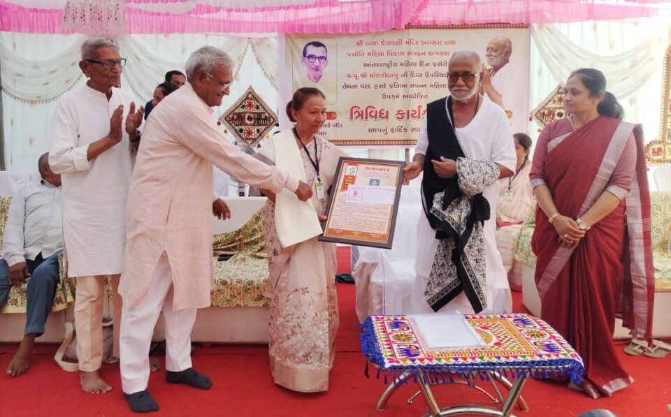 બગસરામાં શ્રી મોરારિબાપુના હસ્તે મહિલા દિન નિમિત્તે પ્રતિભા સંપન્ન નારીરત્ન સન્માન
