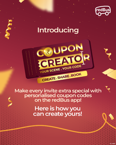 રેડબસ એન્ડ્રોઇડ એપ પર વિશિષ્ટ રીતે ઉપલબ્ધ, આ સુવિધા કોઈપણ વપરાશકર્તાને કસ્ટમ કૂપન કોડ બનાવવા અને તેને બહુવિધ પ્રાપ્તકર્તાઓ સાથે શેર કરવાની મંજૂરી આપે છે. દરેક કૂપન મોકલનારને કોઈ ખર્ચ વિના બનાવવામાં આવે છે અને પ્રાપ્તકર્તાઓ માટે આકર્ષક ડિસ્કાઉન્ટ આપે છે – નવા વપરાશકર્તાઓ માટે 15% ડિસ્કાઉન્ટ (₹400 સુધી) અને પુનરાવર્તિત વપરાશકર્તાઓ માટે 2% ડિસ્કાઉન્ટ (₹400 સુધી). કૂપન ક્રિએટર સાથે, રેડબસ મુસાફરી દ્વારા જીવનની ઉજવણીઓ શેર કરવાની એક સરળ છતાં વિચારશીલ રીત રજૂ કરે છે