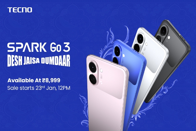 નવી દિલ્હી | ૧૬મી જાન્યુઆરી ૨૦૨૬ — કેટલાક દિવસો અનુમાનિત હોય છે, તો ઘણા નથી હોતા. આ વાસ્તવિકતાને ધ્યાનમાં રાખીને, ટેક્નો એ આજે ​​ સ્પાર્ક ગો 3 ના લોન્ચની જાહેરાત કરી, જે ભારતના રોજિંદા આગળ વધતા યુવાનો, વિદ્યાર્થીઓ અને યુવા વ્યાવસાયિકો માટે બનાવવામાં આવેલ સ્માર્ટફોન છે, જે એક એવું ડિવાઇસ ઇચ્છે છે જે વિશ્વસનીય લાગે અને સમાધાન વિના શ્રેષ્ઠ કક્ષાની કનેક્ટિવિટી પ્રદાન કરે.