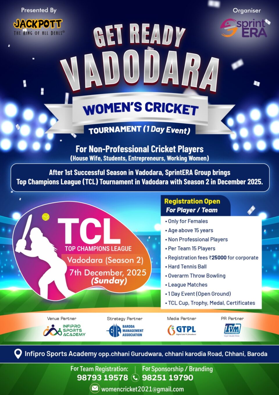વડોદરા ખાતે “ટોપ ચેમ્પિયનશ લીગ” TCL સિઝન 2માં જોવા મળશે વુમેન ક્રિકેટ ટેલેન્ટ